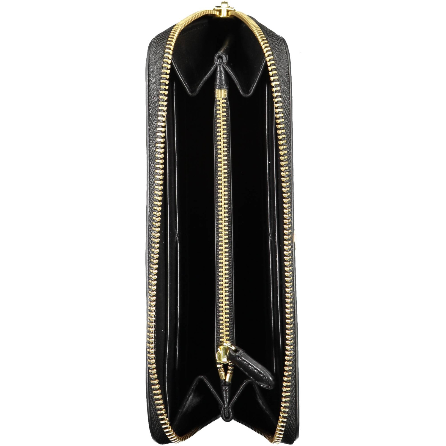 portafoglio 4 scomparti, doppi spazi interni formato da card, portamonete, chiusura con zip, logo