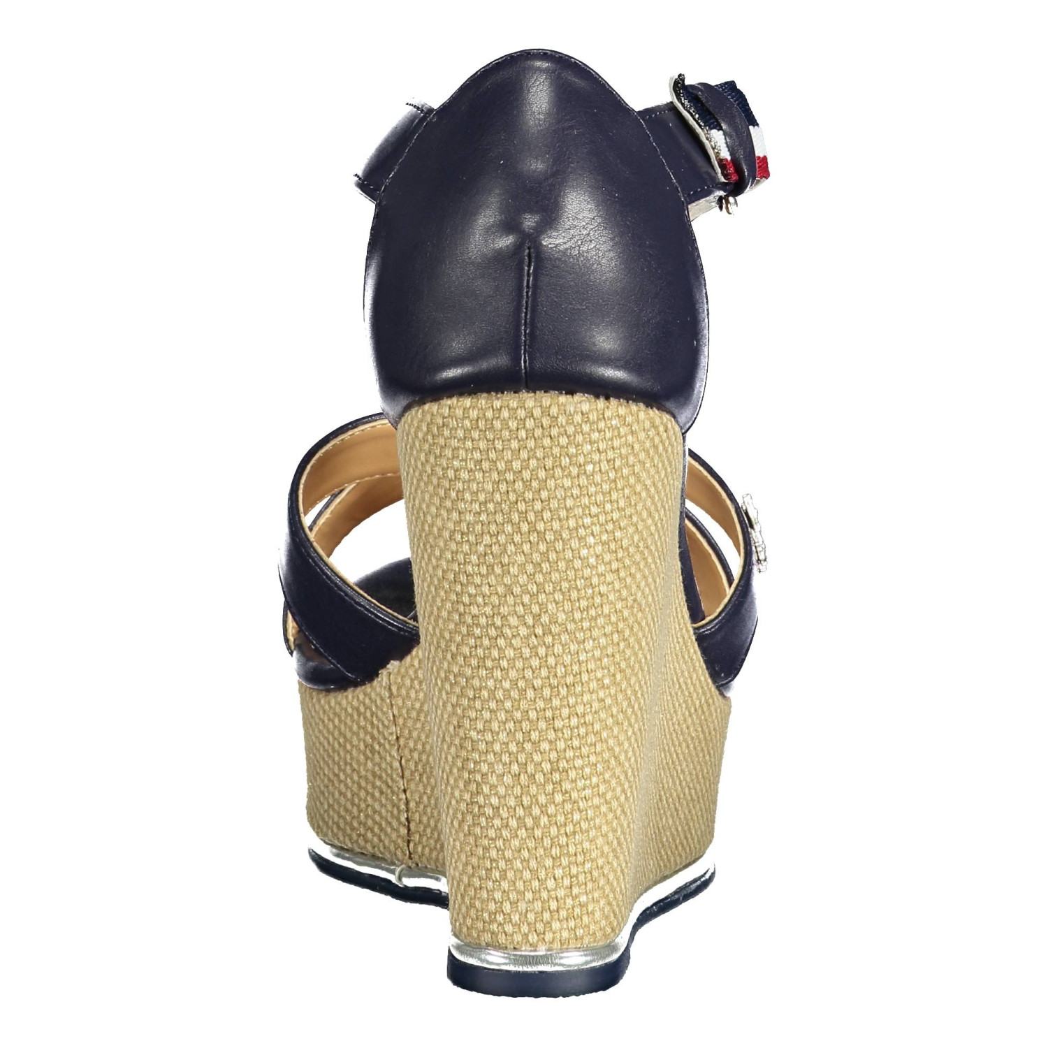sandalo, cinturino alla caviglia, zeppa 12 cm, dettagli a contrasto, logo