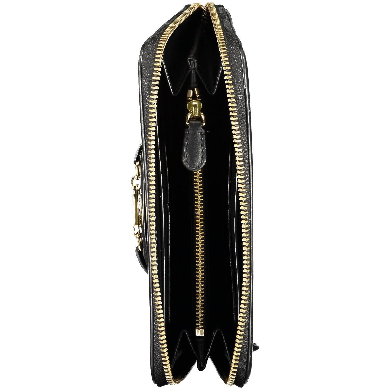 portafoglio 4 scomparti, portamonete, spazi interni formato da card, dettagli a contrasto, chiusura con zip, logo