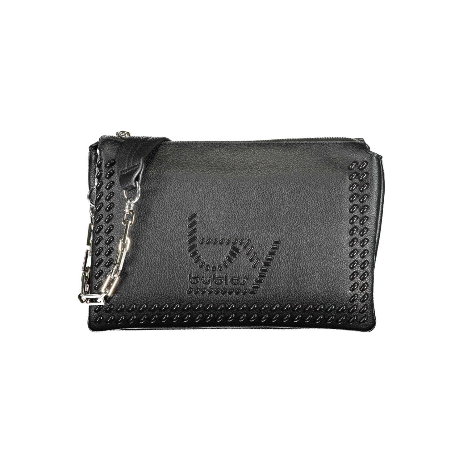 borsa 1 manico a spalla in catena removibile, tracolla regolabile e removibile, 3 scomparti, 1 tasca interna, spazi interni portadocumenti, dettagli a contrasto, chiusura con zip, logo