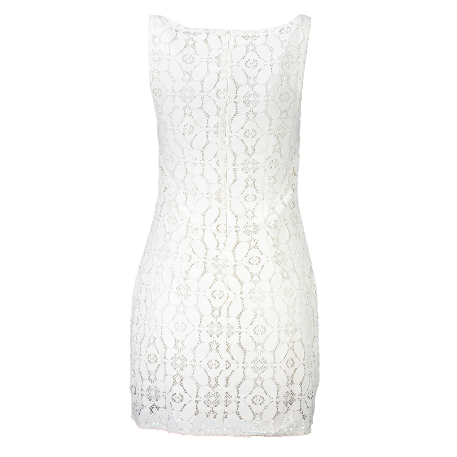 abito corto, senza maniche, scollo quadrato, cerniera sul retro, fodera, dettagli a contrasto, logo