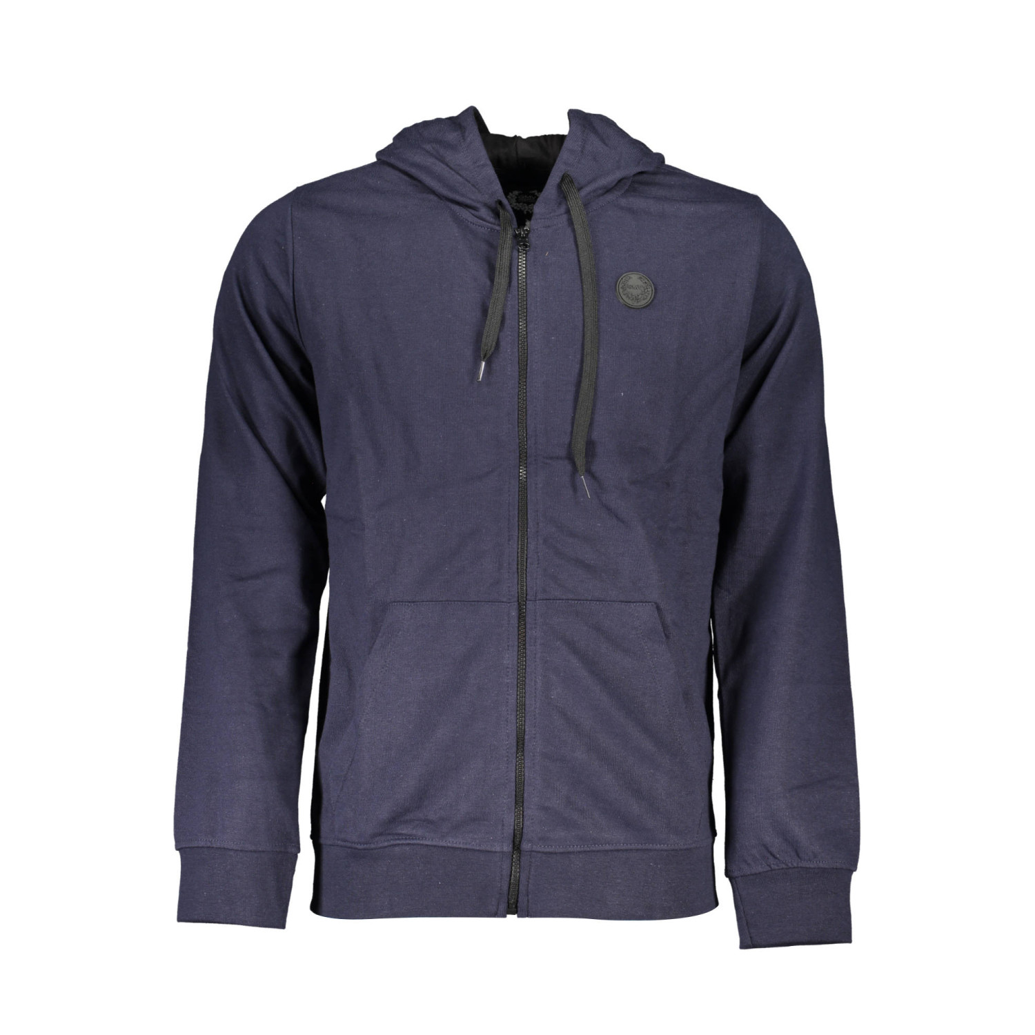 felpa maniche lunghe con cappuccio, garzata, 2 tasche centrali, zip, applicazione, logo