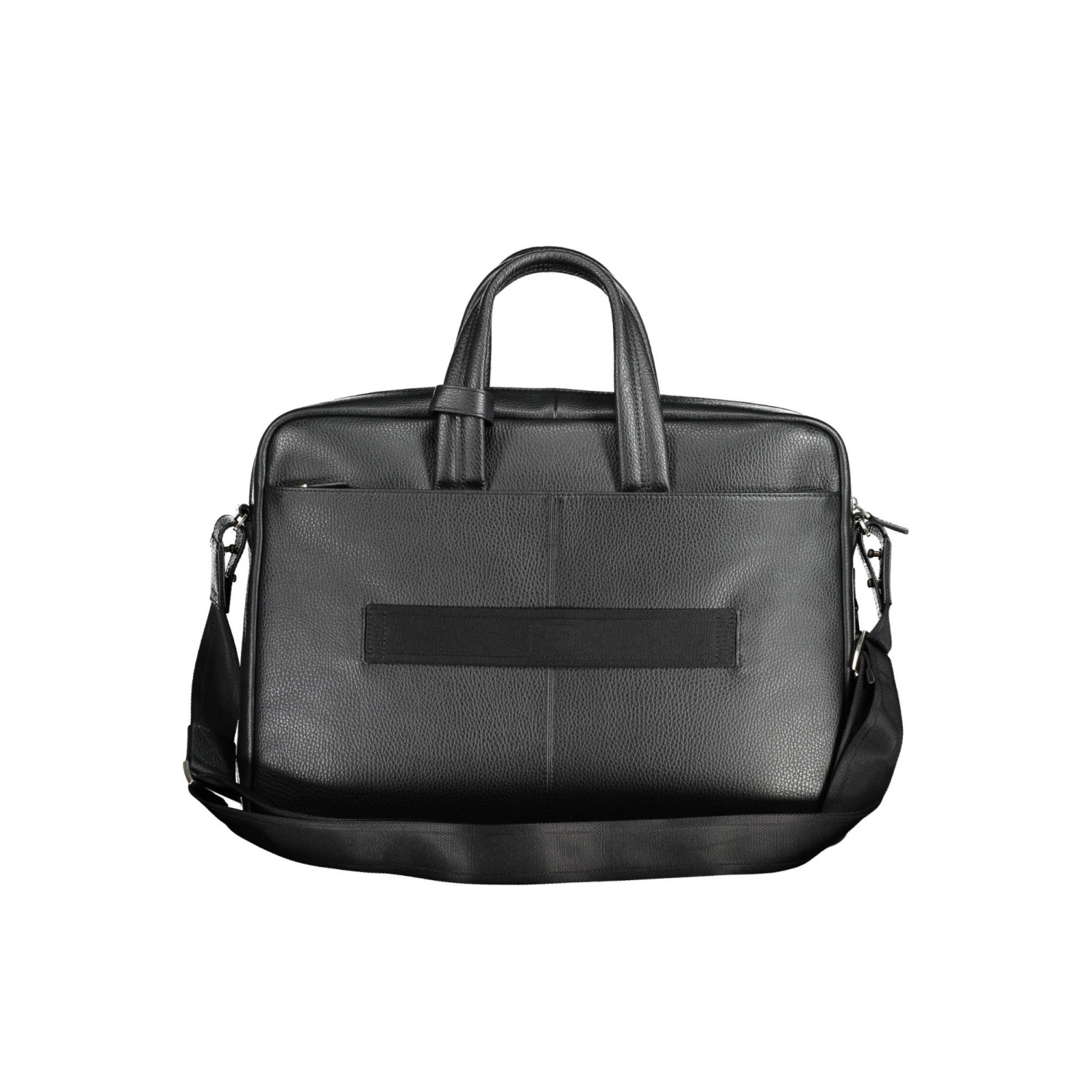 cartella 2 manici, tracolla regolabile e removibile, 3 tasche esterne, 1 scomparto interno porta pc, spazi interni portadocumenti, portapenne, dettagli a contrasto, chiusura con zip, logo