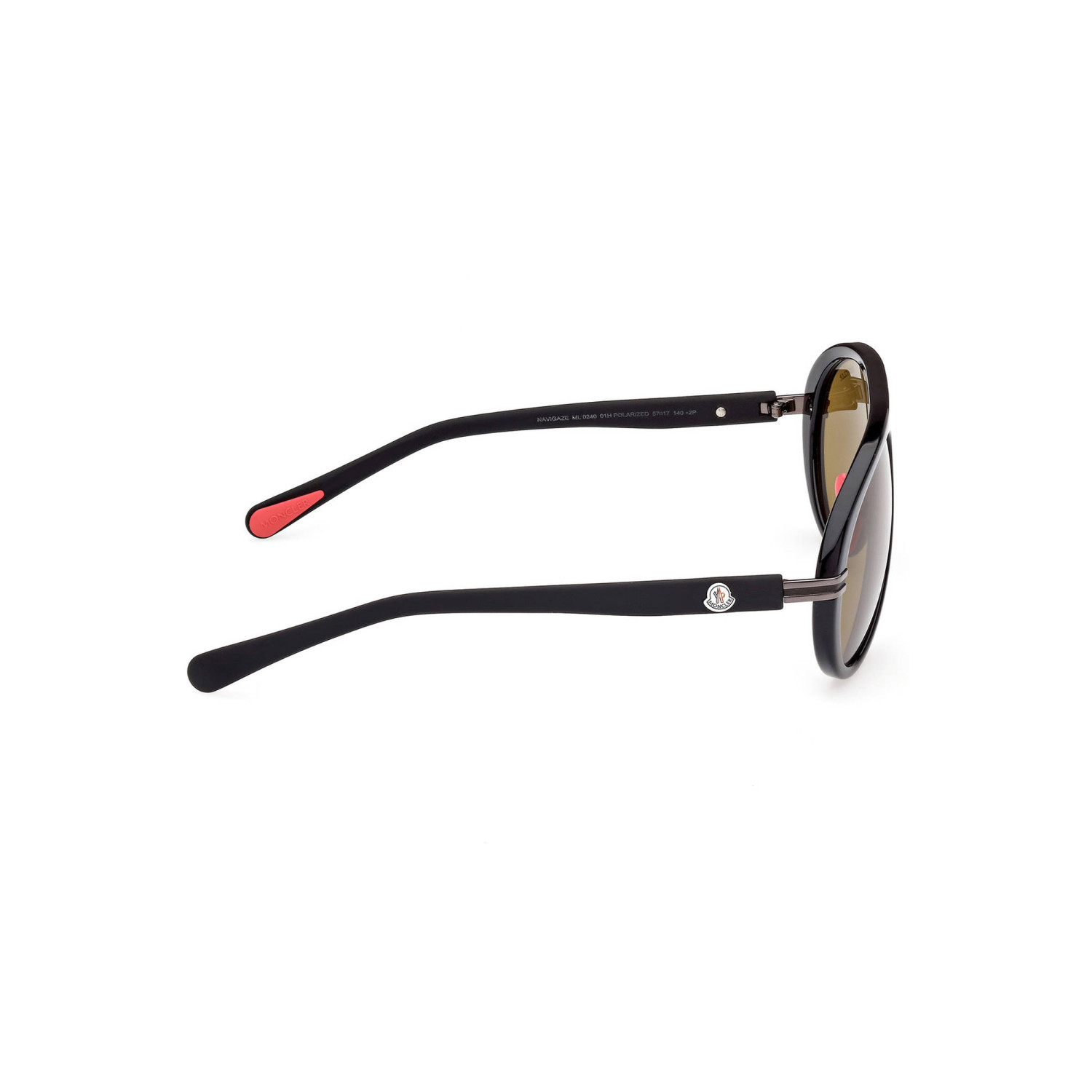occhiale da sole, montatura pantografata, lente a goccia, lente gialla polarizzata, dettagli a contrasto, larghezza lente 57 mm, larghezza del ponte 17 mm, lunghezza asta 140 mm, logo
