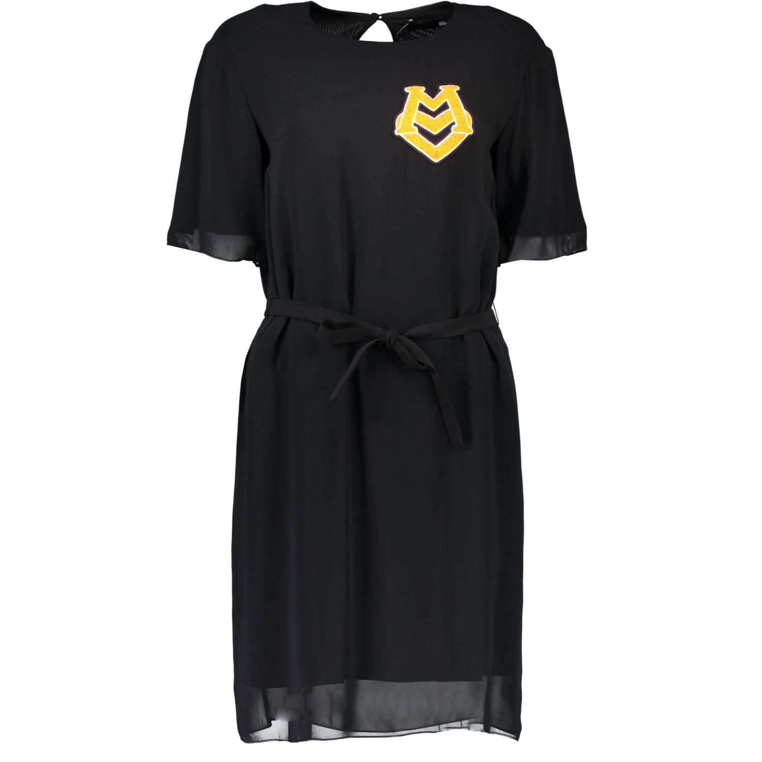 ABITO CORTO, MANICHE CORTE, SCOLLO TONDO, CHIUSURA POSTERIORE, APPLICAZIONE, LOGO