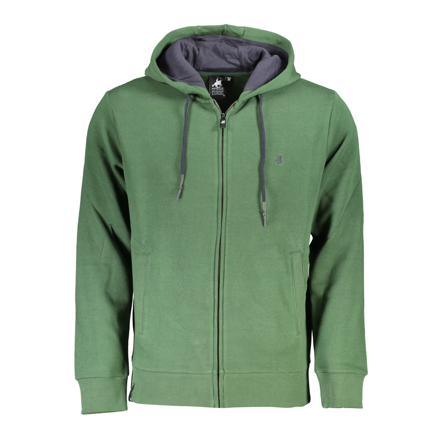 FELPA MANICHE LUNGHE CON CAPPUCCIO, 2 TASCHE, ZIP, RICAMO, LOGO