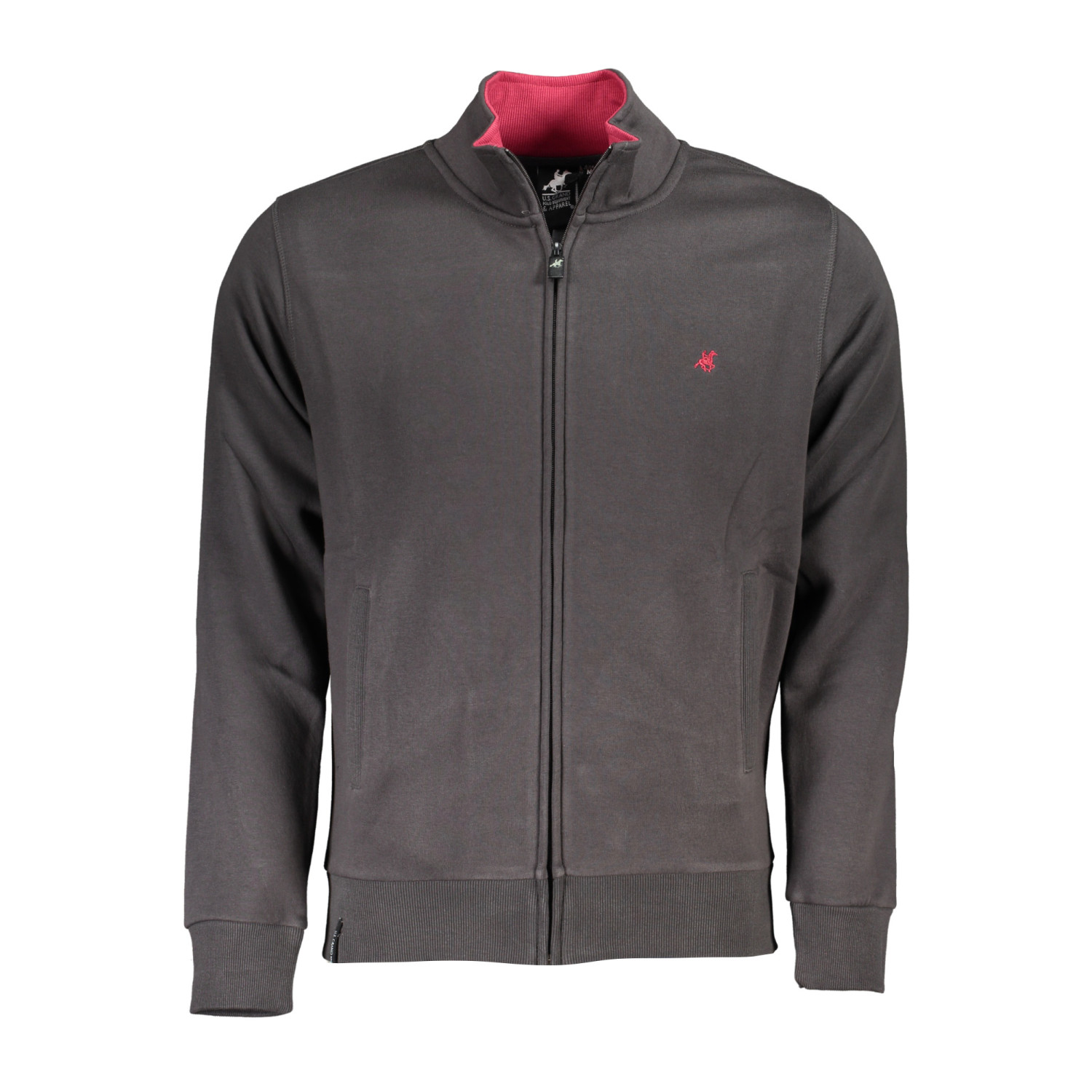 FELPA MANICHE LUNGHE, 2 TASCHE, ZIP, RICAMO, LOGO