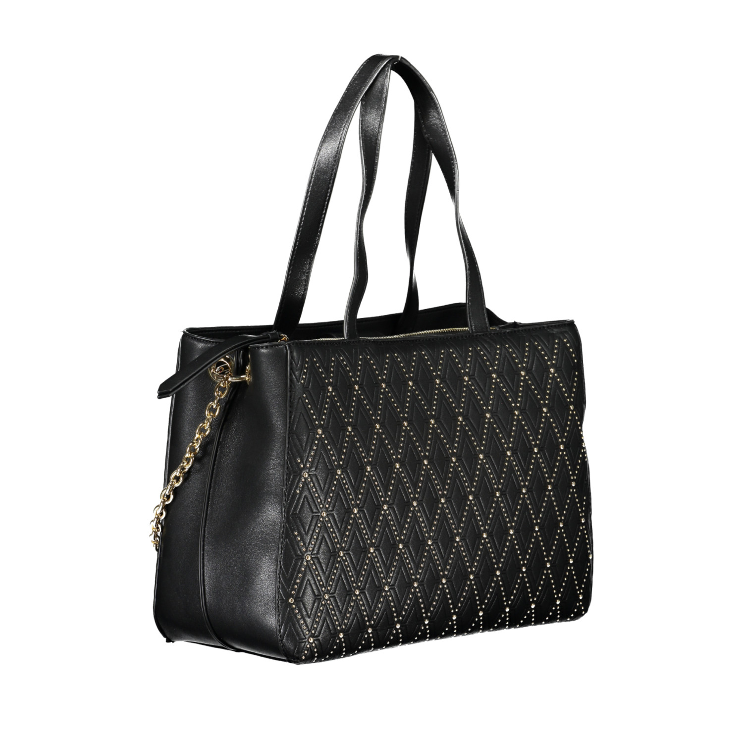 BORSA 2 MANICI, 1 MANICO A SPALLA IN CATENA REMOVIBILE, TRACOLLA REGOLABILE E REMOVIBILE, 2 SCOMPARTI, 1 TASCA CENTRALE, 1 TASCA INTERNA, SPAZI INTERNI PORTATELEFONO, DETTAGLI A CONTRASTO, CHIUSURA CON ZIP E AUTOMATICI, LOGO