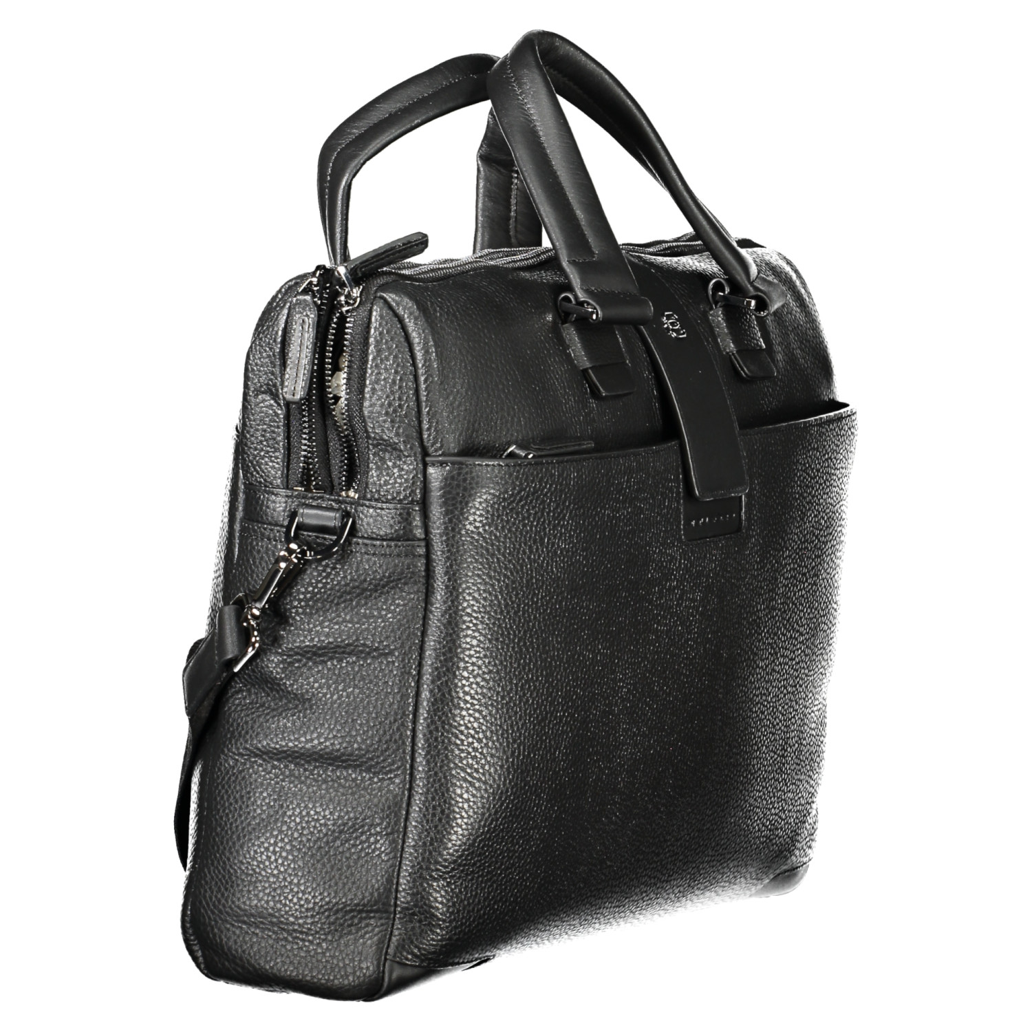 CARTELLA 2 MANICI, TRACOLLA REGOLABILE E REMOVIBILE, 1 TASCA ESTERNA, 2 SCOMPARTI SEPARATI, 1 TASCA INTERNA, SPAZI INTERNI PORTA LAP-TOP, PENNE, E DOCUMENTI, DETTAGLI A CONTRASTO, CHIUSURA CON ZIP, LOGO