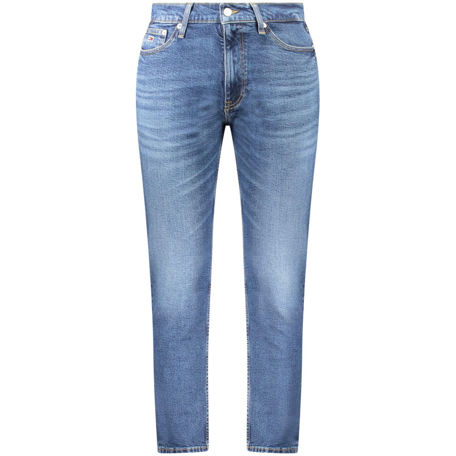 DAD JEANS, REGULAR TAPERED, 5 TASCHE, EFFETTO SLAVATO, BOTTONE E ZIP, LOGO, 50% REGENERATIVE COTTON