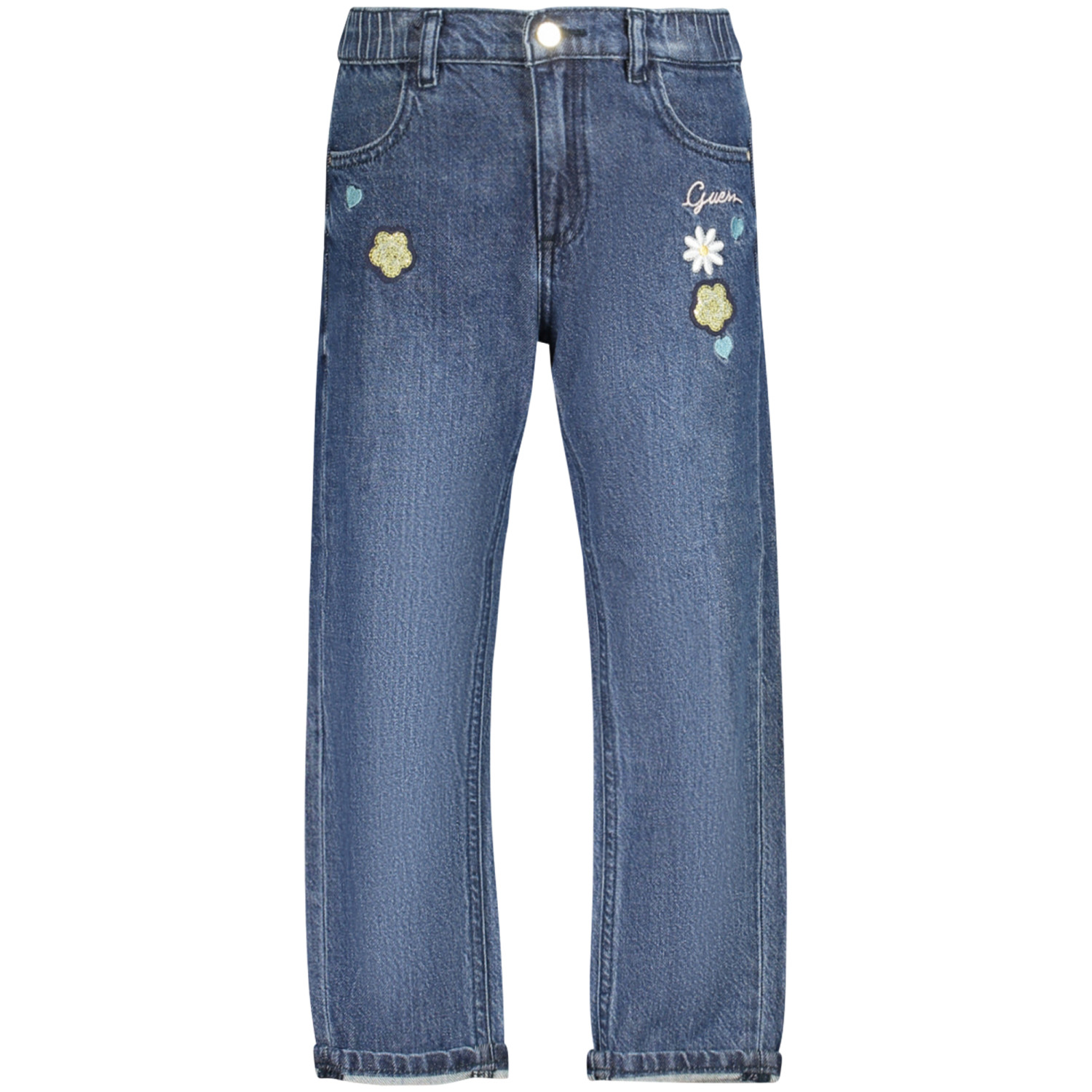 JEANS, ELASTICO IN VITA, 4 TASCHE, BOTTONE E ZIP, RICAMO, LOGO