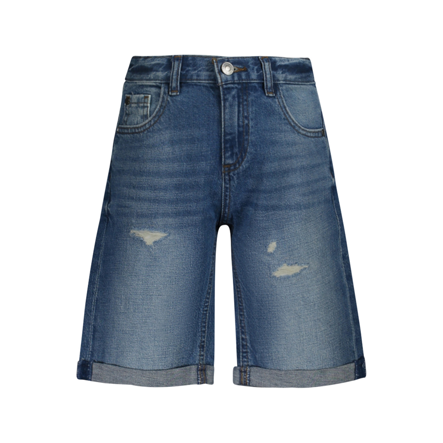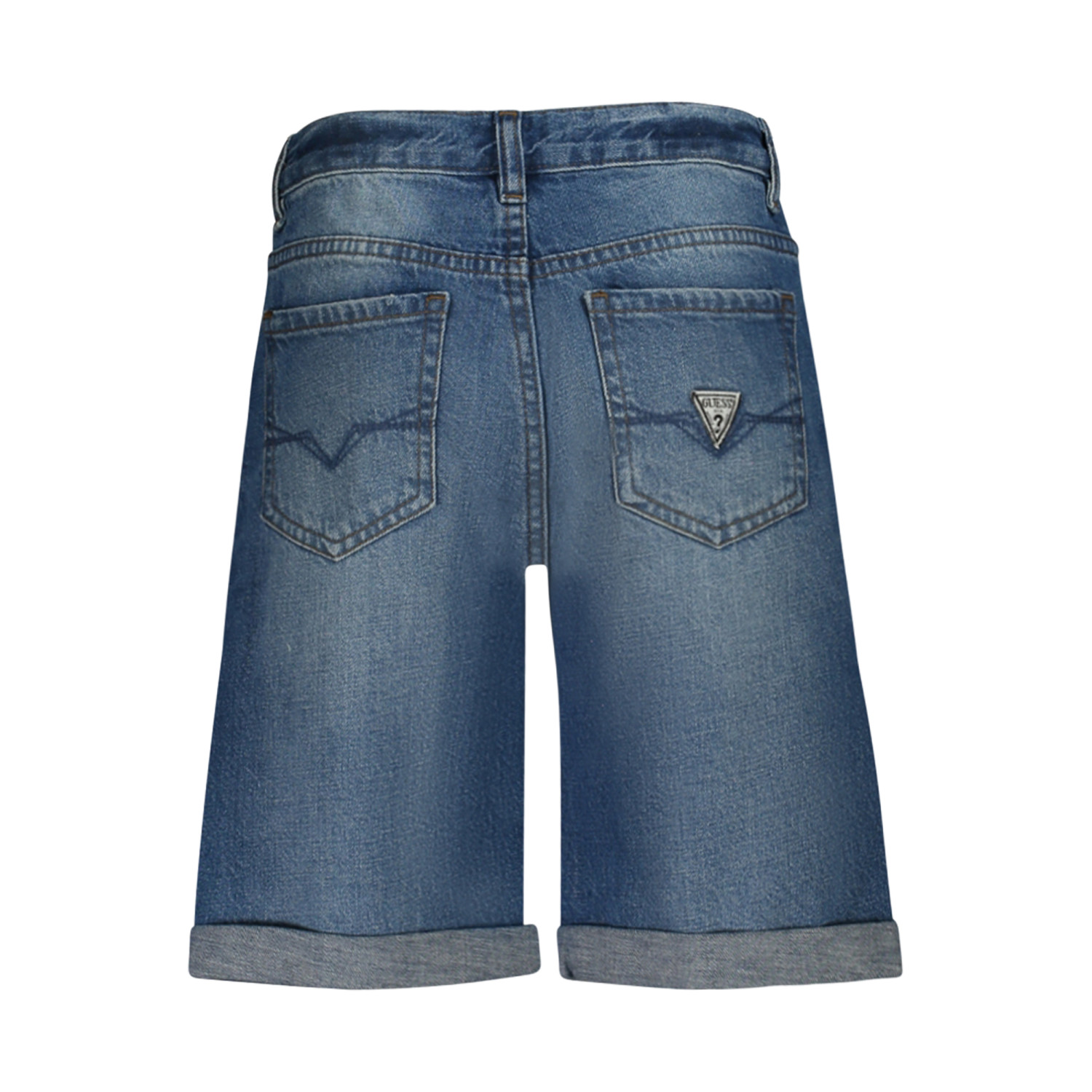 SHORT IN JEANS, ELASTICO INTERNO REGOLABILE, 5 TASCHE, EFFETTO SLAVATO E USURATO, LOGO