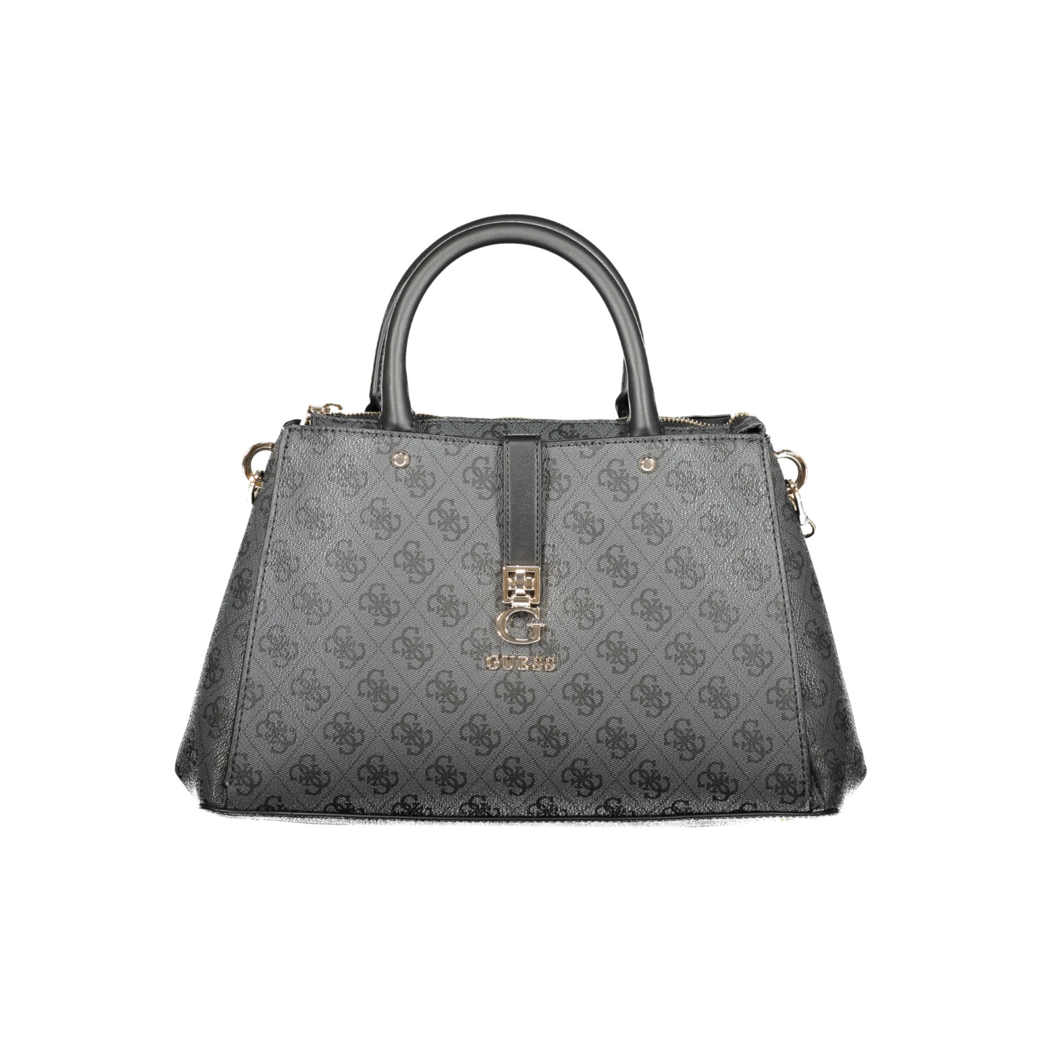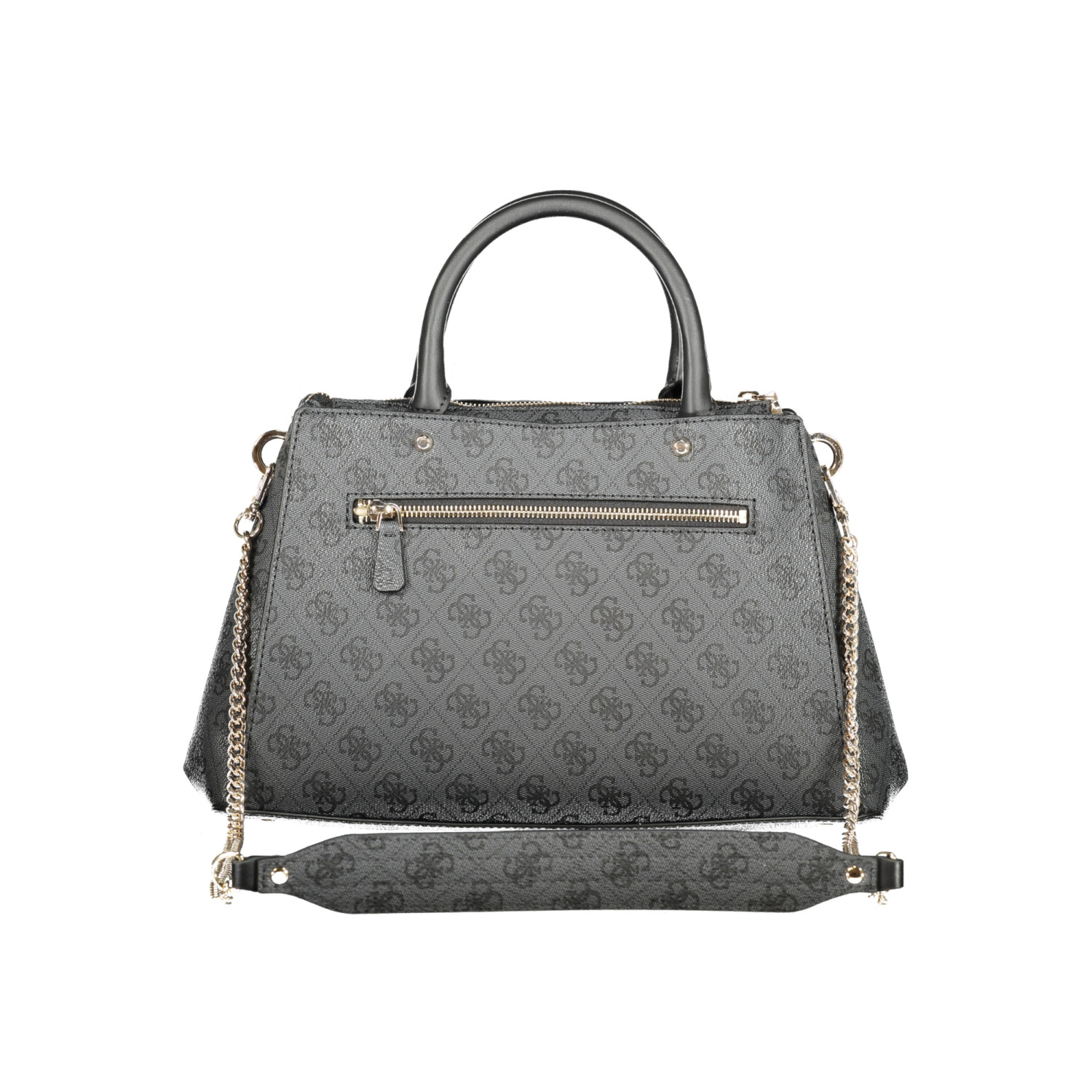 BORSA ZAMIRA, 2 MANICI, TRACOLLA IN CATENA REMOVIBILE, 3 TASCHE ESTERNE, 3 SCOMPARTI, 1 TASCA INTERNA, SPAZI INTERNI PORTATELEFONO, DETTAGLI A CONTRASTO, PIEDINI PROTETTIVI, LOGO